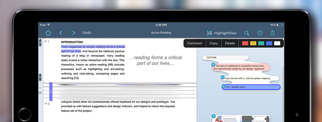 LiquidText is an iPad app which allows the creativity and speed of free-hand annotation to co-exist with the benefits of structured digital notes.