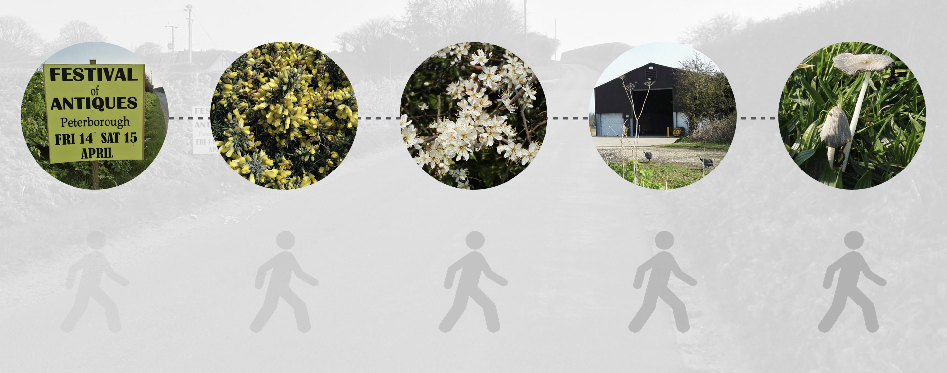 In the moment the questions materialised I was more interested in my walk. I was conscious of the visual stimuli flooding into my eyes – the sign advertising the antiques fair, the spring blossom opening in the hedgerows, the chickens pecking in the farm yard – but my desire for answers was far exceeded by wanting to be in the present, enjoying the experience of the walk.