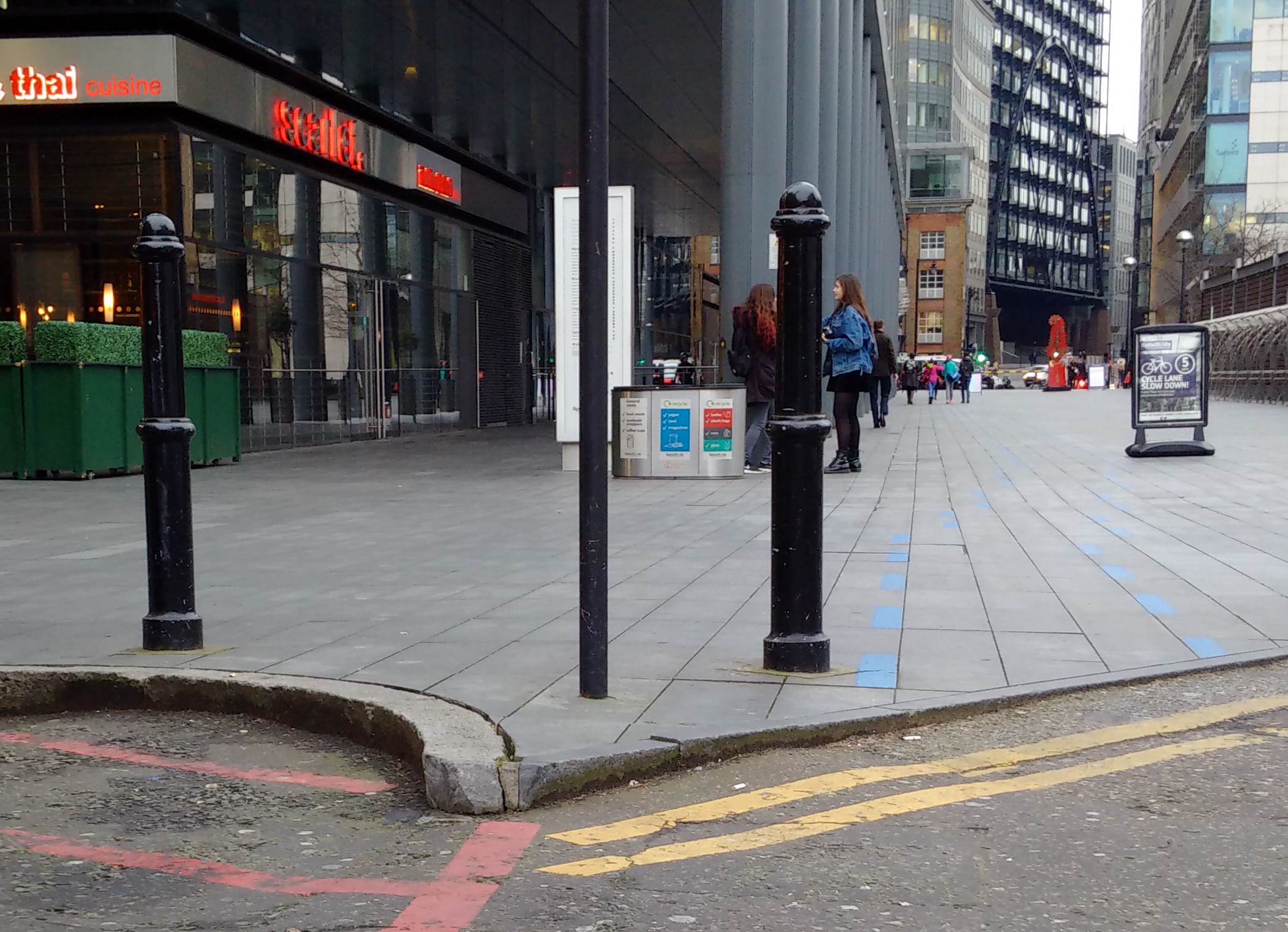 Yet in this piece of street design, the boldly demarcated red area merely indicates a bay where you’re not allowed to park or stop. Similarly, the yellow lines are a zone of the street where you can’t leave a car.
